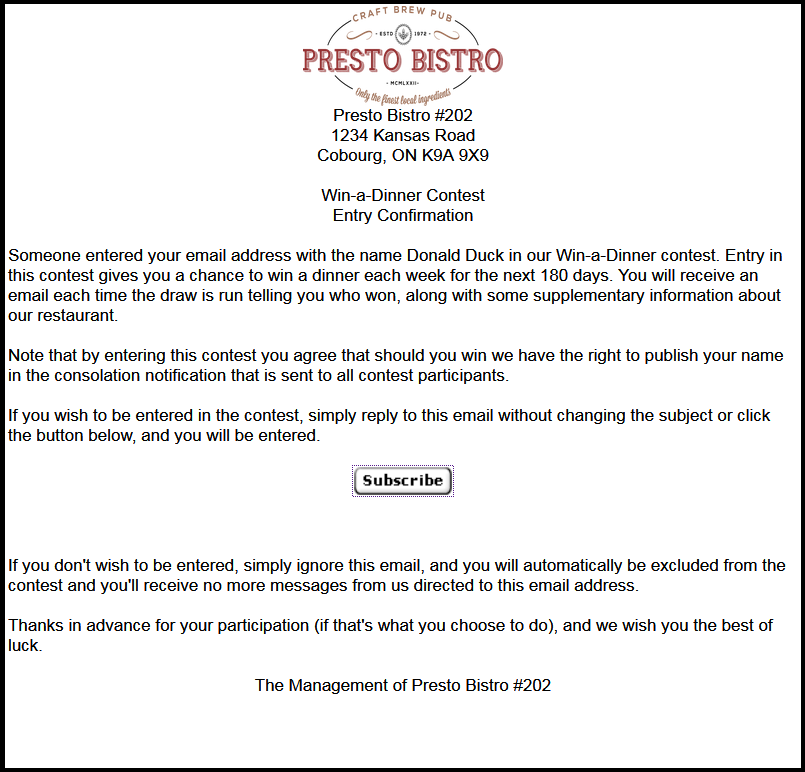 of the subscriber's name in contest notifications. This sentence should be included in any modification